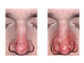 The face is the most common site for this treatment. But other areas of the skin can be treated this way too. Dermabrasion is used most often to improve the look of acne scars and fine lines around the mouth. It also may be used to treat an enlarged nose (rhinophyma ) caused by rosacea, a skin condition.